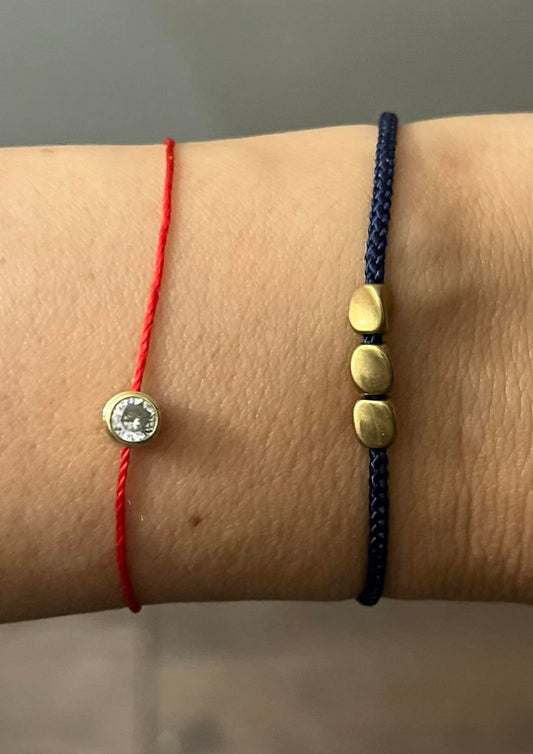 Gold & Blue Bracelet – Minimal Cord with Golden Beads