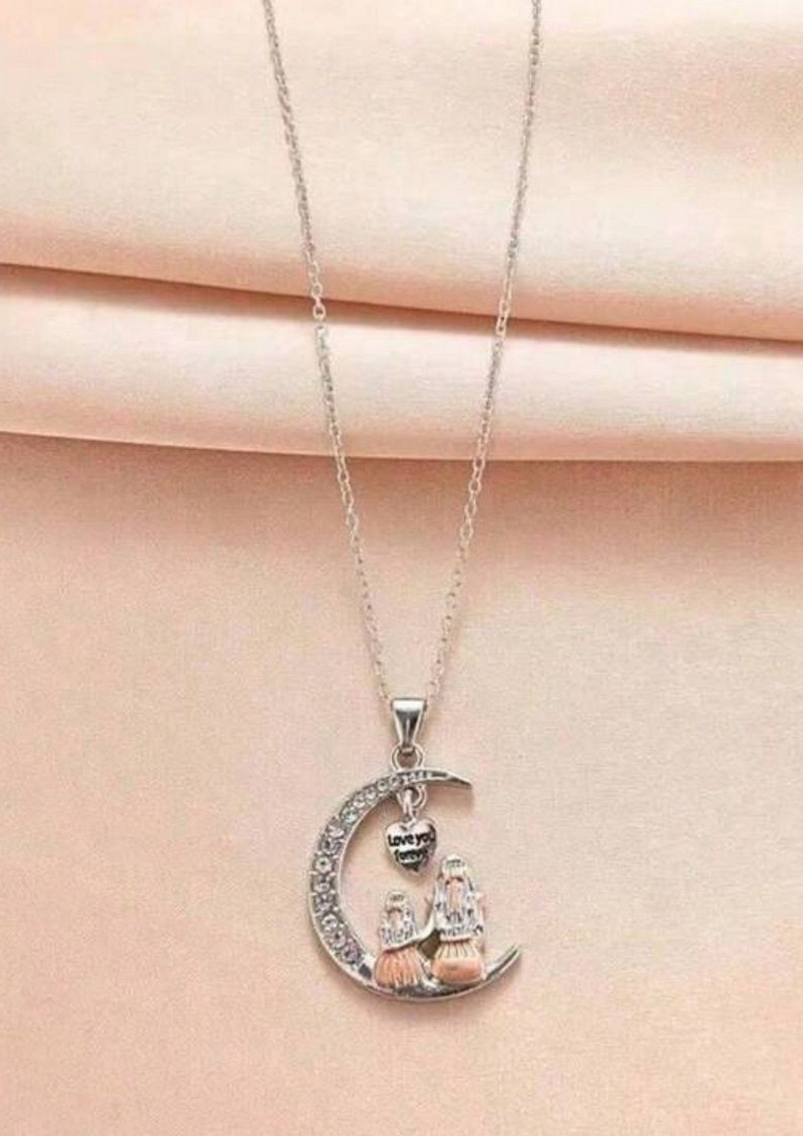 Elegant and heartfelt, this necklace features a crescent pendant with a delicate mother-and-daughter design, symbolizing love, care, and unbreakable bonds. A timeless piece that makes a perfect keepsake for Mother’s Day or any occasion celebrating family.